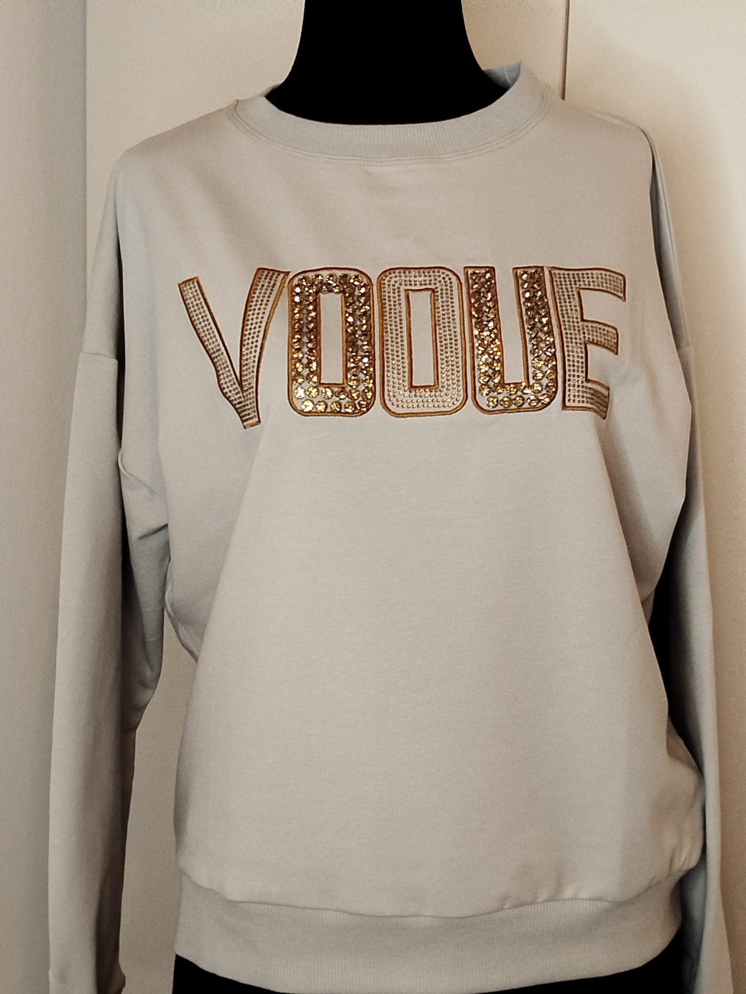 SUDADERA EN COLOR PLATEADO ( GRIS/AZULADO) CON MOTIVOS BRILLI. MODA CASUAL
